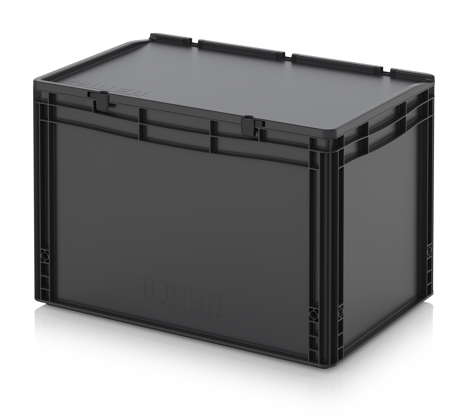 Евроконтейнер с ESD-защитой производства компании AUER Packaging изготавливается из антистатической пластмассы, что делает его пригодным, в частности, для надежного хранения и транспортировки электронной продукции.