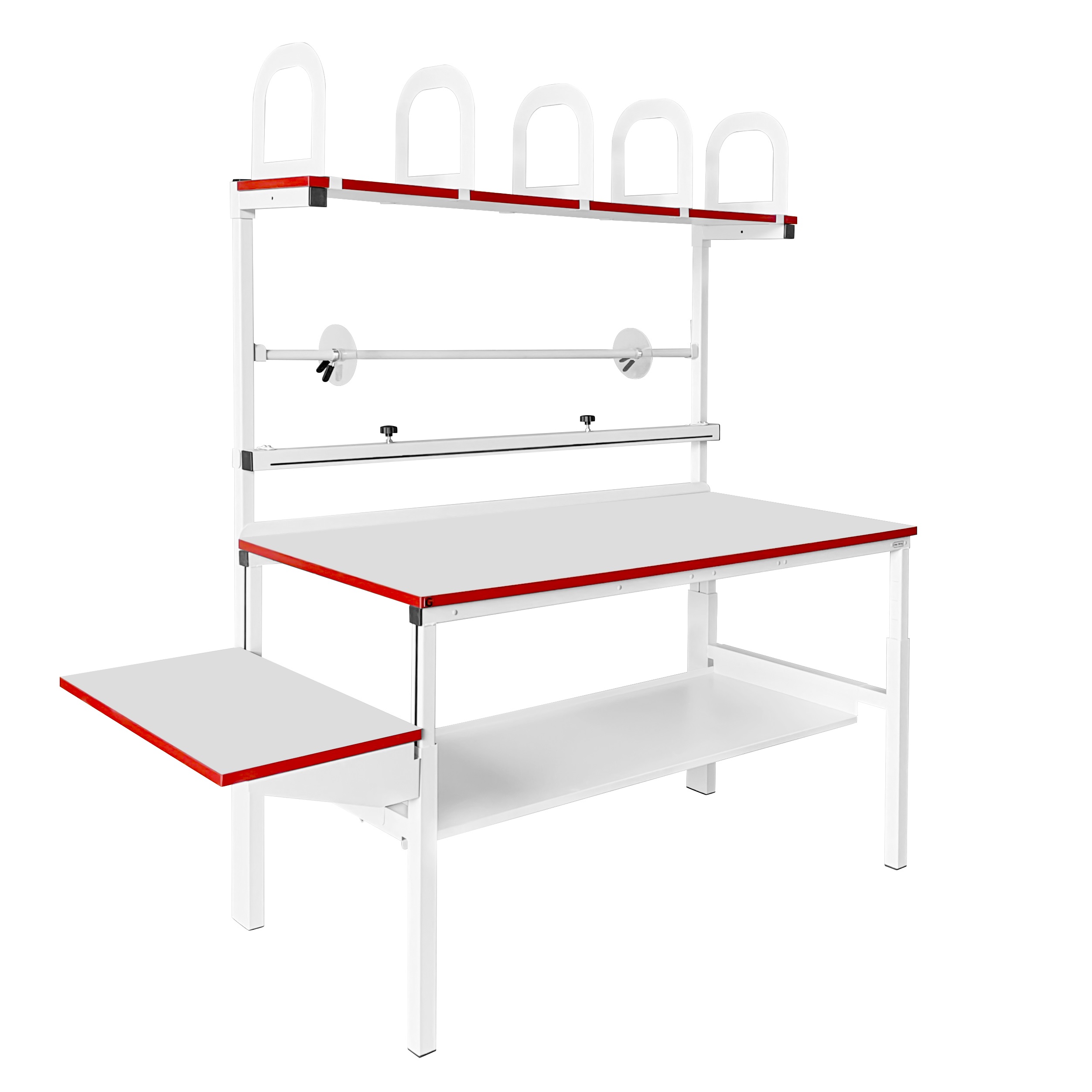 Функциональное расширение комплекта стола для упаковки КСР осуществляется с помощью дополнительного оснащения, начиная от типов покрытий столешницы, ограничителей, дополнительных держателей для рулонов (ДРВ, ДРБ), различных ящиков, заканчивая комплектом светодиодного освещения КОС.
