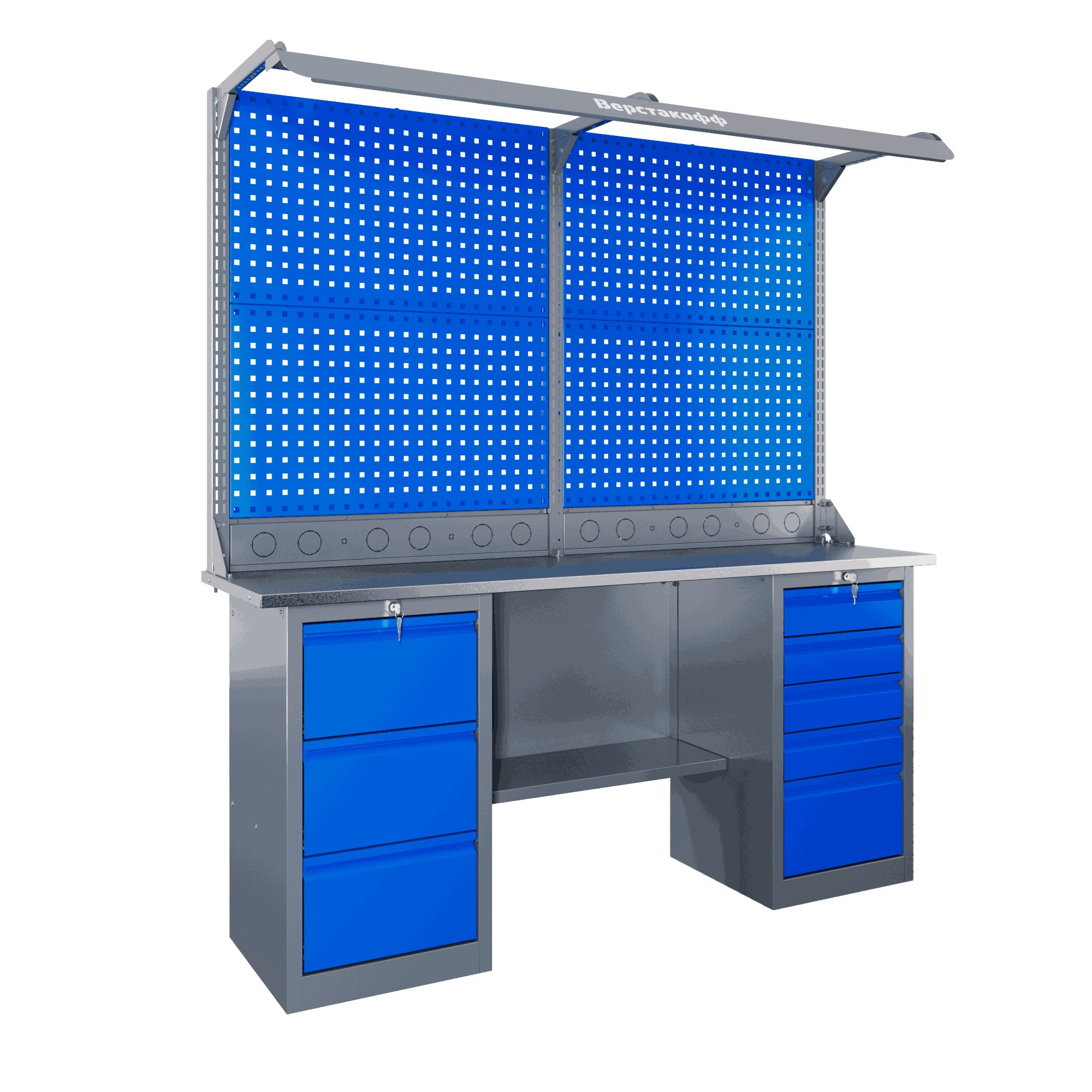 Самые компактные верстаки с глубиной столешницы 500 мм. Благодаря небольшой глубине, такие верстаки легко размещаются в ограниченных пространствах, например, в гаражах, мастерских и тд. Несмотря на компактные размеры, верстаки могут быть оснащены полками, ящиками и держателями для инструментов, что помогает поддерживать порядок и быстро находить нужные предметы.