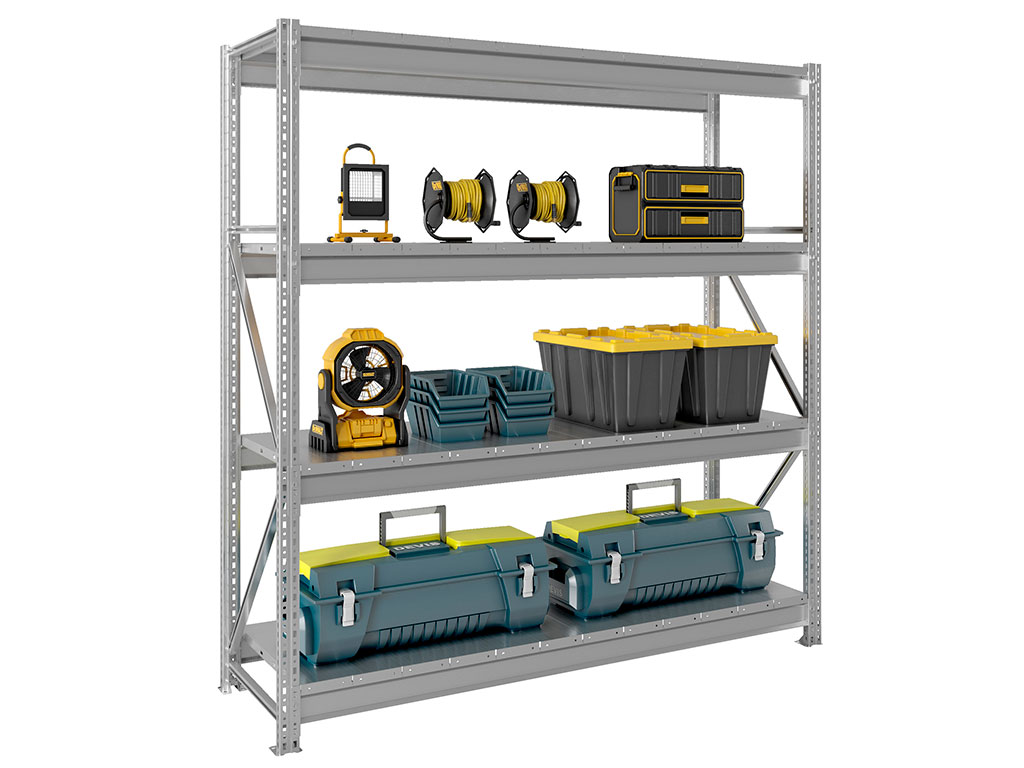 • Среднегрузовой стеллаж MS Pro 4 ярусa с металлическим настилом