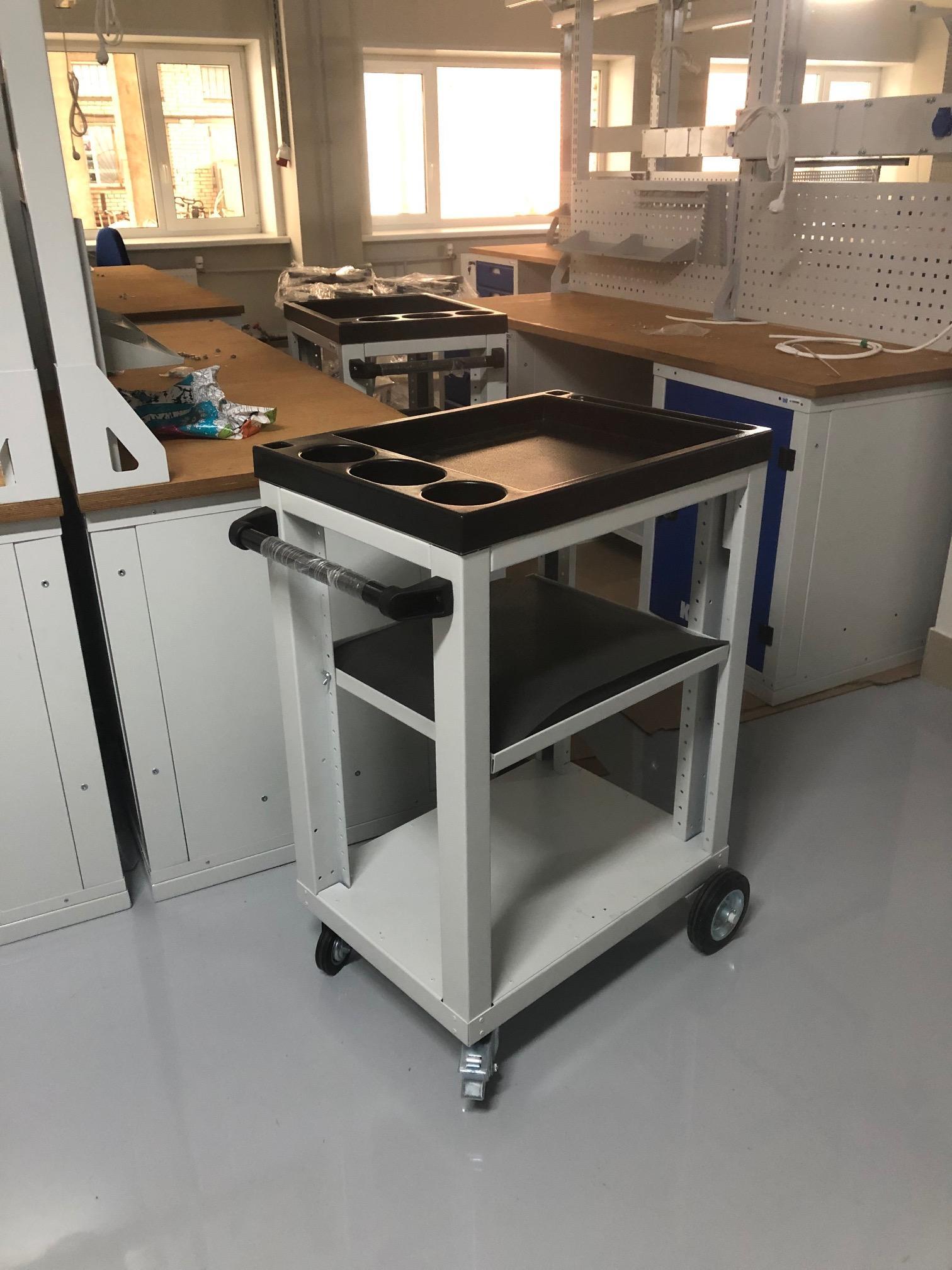- Лоток и полка имеют по периметру боковые стенки высотой 30 мм, препятствующие скатыванию и падению инструмента и перемещаемых предметов