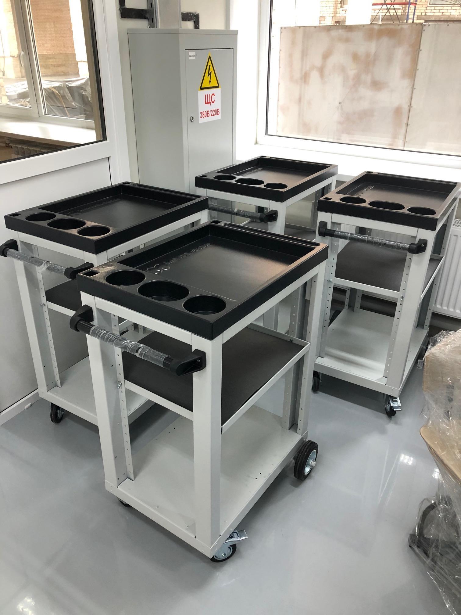 - Препятствуют скатыванию и падению инструмента и грузов с нижней полки-днища при перемещении тележки
